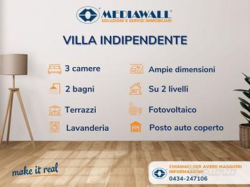 (Riferimento: BR-389-RV) Maniago (BR-389-RV) zona sud ferrovia: AMPIE DIMENSIONI - CONSUMI DI GESTIONE BASSISSIMI - COMPLETAMENTE INDIPENDENTE - 9 KW DI FOTOVOLTAICO Proponiamo interessante soluzione indipendente di ampie dimensioni che verrà edificata su due livelli. Piano Terra: soggiorno - pranzo con angolo cottura eventualmente divisibile, disimpegno, bagno finestrato con doccia, lavanderia, studio e portico; Piano Primo: camera matrimoniale con terrazzo dove eventualmente si può creare il bagno padronale, camera doppia, camera singola e terrazzo, accessoriata di doppio posto auto coperto. L'abitazione verrà costruita con impianto di riscaldamento a pavimento con pompa di calore, impianto fotovoltaico con un potenza pari ad 9 KW, serramento in PVC con triplo vetro. L'abitazione è personalizzabile. Contattaci per ulteriori informazioni o un sopralluogo. Buona opportunità! L'immagine pubblicata è puramente indicativa e non rappresenta pertanto l'immobile di futura edificazione.