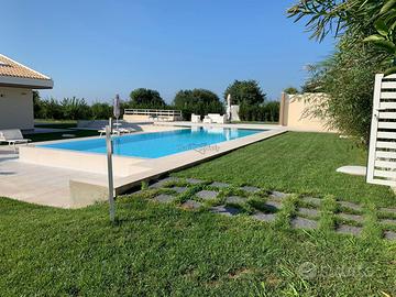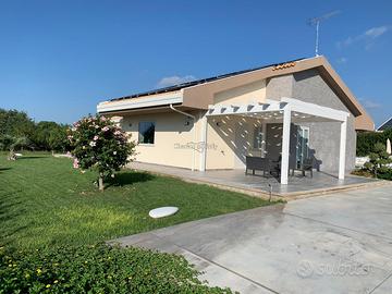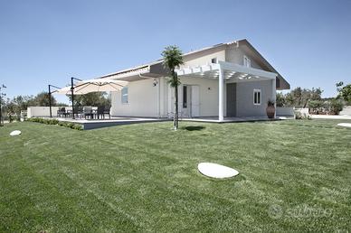 A Modica, a soli 4 km dalle splendide spiagge dorate del litorale, proponiamo in vendita un'esclusiva villa indipendente di circa 255 mq. La proprietà si trova all'interno di un contesto residenziale tranquillo e ben curato, ideale sia come abitazione principale che come investimento per attività ricettive grazie alla sua attuale destinazione d'uso B&B. La villa si distingue per il suo design moderno ed elegante: la facciata chiara si integra perfettamente con le linee architettoniche contemporanee e gli infissi bianchi donano luminosità agli ambienti interni. L'ingresso è impreziosito da una grande veranda coperta con pergolato bianco dove rilassarsi nelle giornate estive o organizzare cene conviviali all'aperto. Il bellissimo giardino privato circonda tutta la casa offrendo privacy assoluta; vialetti piastrellati conducono verso le diverse zone relax tra cui un'ampia area pranzo esterna ombreggiata da moderni gazebo ed una splendida piscina. Gli interni sono caratterizzati da finiture raffinate: pavimenti effetto legno chiaro, arredi minimalisti dai toni neutri e spazi sapientemente distribuiti rendono ogni ambiente accogliente ed estremamente funzionale. La zona giorno comprende una cucina open space dotata di bancone bar, sala da pranzo luminosa e soggiorno confortevole; grandi vetrate permettono alla luce naturale di valorizzare tutto lo spazio interno. Situata vicino ai servizi principali ma immersa nella quiete tipica della campagna siciliana costiera, questa soluzione rappresenta il connubio ideale tra comfort moderno e fascino mediterraneo. Non perdere l'occasione unica di vivere o investire in uno degli angoli più suggestivi della Sicilia sud-orientale! Contatta subito la nostra agenzia per maggiori informazioni o per prenotare una visita. Riferimento: L 1439 A C.E.: A1