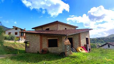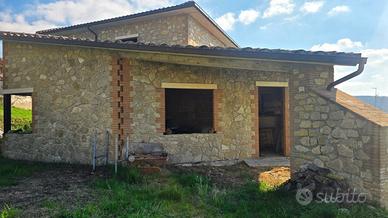 Al piano terra troviamo una cucina con camino, un ampio soggiorno con soffitti alti, camino e portico (cucina e soggiorno possono diventare un unico "open space"), un bagno, un ripostiglio ed un garage. Al primo piano troviamo due camere matrimoniali, una camera singola e un bagno. Possibilità di personalizzare e modificare il progetto. Da rifinire internamente. Struttura antisismica. Tutti i dettagli in agenzia. Posizione strategica (tranquilla ma vicina ai servizi) e panoramica.