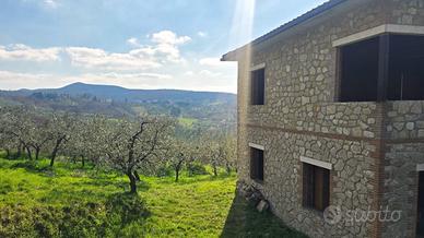A poco più di 1 ora da Roma e 25 minuti da Orvieto, alla confine del bellissimo borgo di Montecchio, a solo due passi dalla piazza centrale, vendiamo casa indipendente allo stato grezzo, con tutte le facciate in pietra, circondata da un giardino di circa 1000mq con vista panoramica sulla valle.