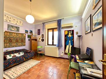 Dalla zona giorno tramite scala interna a vista si accede al piano sotto strada destinato interamente a cucina/soggiorno unico ambiente, finestrato su 3 lati, con 1 ripostiglio ed un servizio w. c.