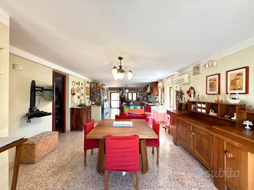 Composta al piano terra da ingresso su ampia zona giorno con camino, 3 camere da letto matrimoniali, 1 cameretta, 1 ripostiglio e 2 bagni di cui un con doccia ed uno con vasca.