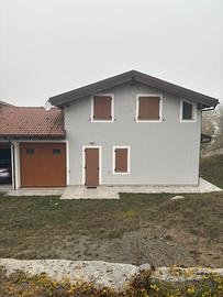 Bellissima villa in posizione panoramica in villaggio residenziale di nuova costruzione con accesso da strada privata. L'abitazione su due piani è composta da piano terreno con grande zona giorno e magnifiche finestre ad arco che insistono sul dehor esterno, cucina con altra zona sala da pranzo e bagno con doccia. Piano superiore due camere da letto, una delle quali con bagno privato, uno studio e il bagno padronale con vasca. Rifiniture nuove, tetto in legno a vista nella zona notte, bagni hi-tech, rifinita con materiali pregiati. Riscaldamento a pavimento, giardino esclusivo di circa 100 mq. Impianto pannelli solari fotovoltaici, isolamento con cappotto termico. Garage e locale deposito/cantina adibito a lavanderia.