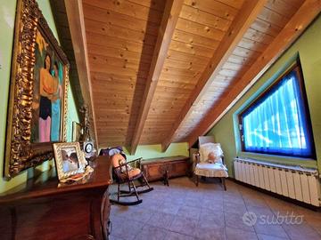 La villa, molto curata in ogni suo aspetto, si compone di ampio porticato da cui si accede al soggiorno con camino, segue la comoda cucina, 3 camere da letto di cui due mansardate, bagno, locale disimpegno mansardato, cantinato/lavanderia. Completano la proprietà l'autorimessa, il posto auto e il giardino di mq 1000 circa, con area relax e barbecue . La villa è posta in una zona collinare a pochi minuti dal centro città e dal lago. DA VEDERE!