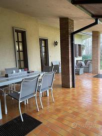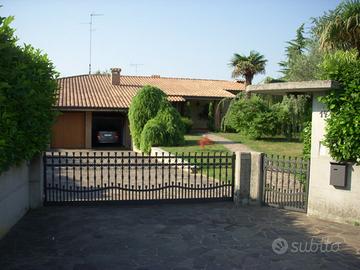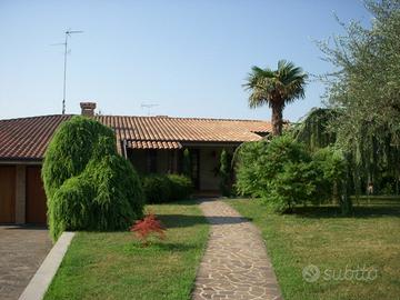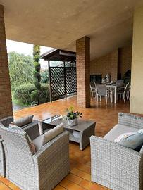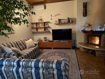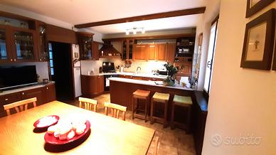 splendida villa indipendente inserita in un lotto di ampie dimensioni recintato con giardino di mq 2300 molto curato e caratterizzato da un vialetto di accesso carraio ed uno pedonale. L'abitazione è stata oggetto di un recente intervento di manutenzione straordinaria con il rifacimento completo del manto di copertura, delle lattonerie e l'installazione di un nuovo impianto fotovoltaico dotato anche di sistema di accumulo. La casa è stata edificata all'inizio degli anni '80 ed è dotata di tutti gli impianti a norma al momento della loro installazione, i materiali di finitura e la loro posa in opera sono di pregevole qualità e di gradevole aspetto. Gli esterni dell'abitazione sono molto curati anche nel dettaglio. I locali interni sono così distribuiti: al Piano Seminterrato, completamente rifinito e dotato di impianto elettrico e di riscaldamento a norma di legge, dal quale si accede mediante una comoda scala interna dal piano rialzato ad un corridoio distributivo, troviamo la cucina di servizio, un'ampia taverna con caminetto, la centrale termica, lavanderia, cantina, ripostiglio e bagno; al Piano Rialzato troviamo i locali abitabili del reparto giorno e notte e quindi l'ingresso della casa, un'ampia cucina, il soggiorno dotato di caminetto, disimpegno zona notte, due camere doppie di cui una dotata di guardaroba, due camere singole e due bagni. Inoltre l'abitazione è dotata di autorimessa con doppio posto auto.