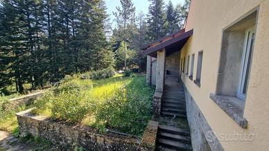 Rif: B73730 (193504409) - Villa a Pelago (FI), Località Consuma, Via Poggio al Frate 13/15 Trattasi di una villetta con ampio giardino oltre ad un appezzamento di terreno boschivo limitrofo. L'abitazione si sviluppa al piano terreno, ed è composta da un ampio salone, due corridoi d'ingresso, cucina, due disimpegni, quattro camere e tre bagni per una superficie esterna lorda (SEL) di mq. 245 circa, oltre ad una loggia di mq. 13 circa, una terrazza di mq. 71 circa e la sola struttura dello studio panoramico di mq. 37 circa non ultimato. Al piano seminterrato si trova un vano autorimessa di mq. 30 circa (di cui solo mq. 27 circa legittimi) e le strutture grezze in cemento armato per il garage in ampliamento di mq. 78 circa ed il relativo scannafosso di mq. 29 circa. Il fabbricato è circondato da un ampio giardino di mq. 3.150 circa. Il giardino risulta completamente recintato, in parte con muretto di cinta ed in parte con recinzione metallica, ma privo dei cancelli. La giacitura è pressoché pianeggiante, sfalsata su due livelli, con presenza di abeti. Dalla parte opposta della strada si trova l'appezzamento di terreno boschivo di forma regolare avente una superficie catastale di mq. 3.130, con giacitura acclive, caratterizzato dalla presenza di abeti ed in parte recintato con rete metallica. Catasto Fabbricati del Comune di Pelago al Foglio 35: Particella 68 - Sub. 1 - Categoria A/8 - Classe 2 - Consistenza 9,5 vani - R.C. € 1.349,24 Particella 68 - Sub. 2 - Categoria C/6 - Classe 4 - Consistenza 26 m - R.C. € 114,14 Particella 68 - Sub. 3 - BCNC Catasto Terreni del Comune di Pelago al Foglio 35: Particella 67 - pascolo - classe 2 - superficie mq. 1.240 - R.D. € 0,32 - R.A. € 0,19 Particella 2 - bosco alto - classe 2 - superficie mq. 3.130 - R.D. € 3,07 - R.A. € 0,48 - Classe: B - IPE: 175.00 kWh/mq anno