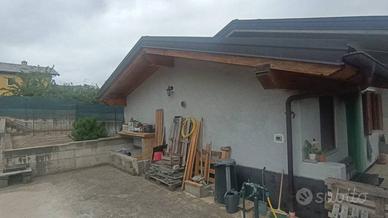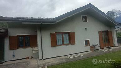 (193029871) - Villa indipendente con giardino cosi composta: zona giorno, cucina, tre camere, servizio e ampio vano deposito con finestra per eventuale secondo servizio, tutto al piano terra, sottotetto non abitabile con accesso da scala interna, ampia zona interrata con intercapedine, taverna, servizio, camera, lavanderia, ampio garage per tre auto e altro, posti auto esterni coperti e scoperti, zona verde a Ovest con uscita dal soggiorno.