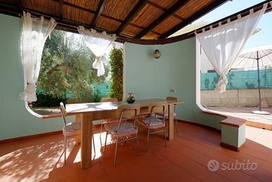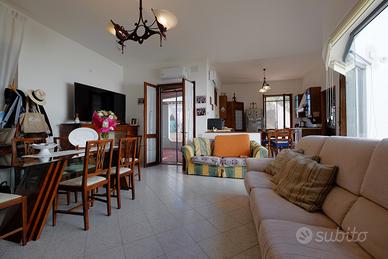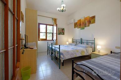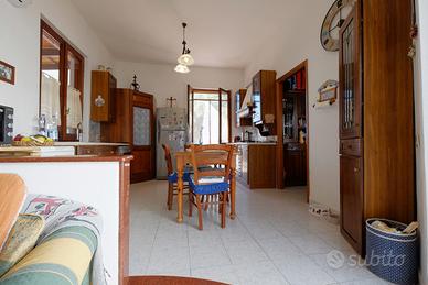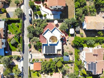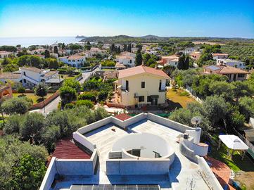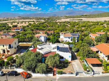 (Riferimento: 007) Porto Columbu A pochissima distanza dal mare, dal porticciolo turistico di perd'e sali e a 5 minuti dal centro nevralgico di Pula, disponiamo di una bella e luminosa villa indipendente. LA proprietà si sviluppa su un unico livello piano terra ed è composta da un luminoso ingresso soggiorno con cucina a vista, disimpegno, quattro camere matrimoniali di cui due con bagno privato, due bagni, particolare giardino interno e comoda cantina. Arricchisce questa proprietà la presenza di un ampio loggiato che si affaccia su un giardino privato sui quattro lati con spazio per poter inserire una piscina e una terrazza panoramica sul mare. Si tratta di una soluzione perfetta come residenza privata o come residenza per business affitti turistici o b&b. Condizioni ottime ed è dotata anche di impianto fotovoltaico che garantisce un ottimo risparmio energetico.
