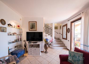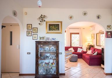 (Riferimento: 21) Pula In zona residenziale a poca distanza dalla bellissima spiaggia di Nora e dal centro nevralgico del paese, disponiamo di un ampia e rifinita villa con giardino. La proprietà è composta da un ampio e luminoso ingresso soggiorno, cucina abitabile e bagno al piano terra. Piano primo composto da disimpegno, tre camere da letto, bagno e ampio balcone coperto. Un comodo locale seminterrato con camera pluriusi e locale lavanderia completa l'interno di questa rifinita proprietà. Interamente termocondizionata e con il collegamento del piano terra al il piano primo attraverso un comodo ascensore, la proprietà si distingue per le sue finiture di alto livello. La zona esterna è caratterizzata da un ombreggiato loggiato, un ampio giardino sui tre lati una zona barbecue-relax e due posti auto che completano questa soluzione rara e esclusiva.
