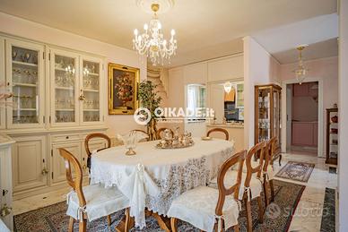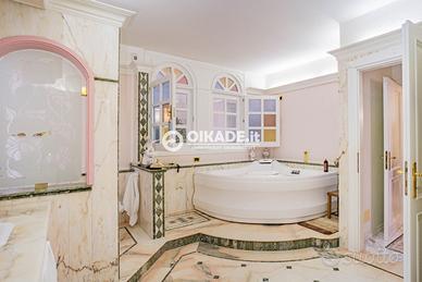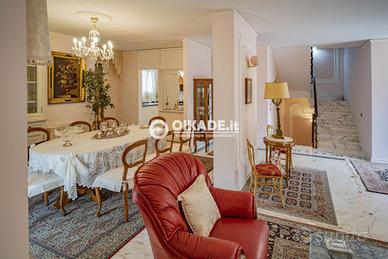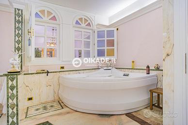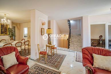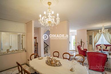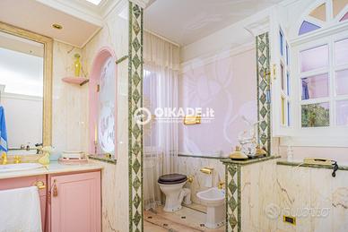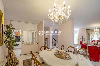 (Riferimento: 1635) Oikade.it consulenze immobiliari propone in vendita una prestigiosa villa indipendente di circa 318 mq commerciali, situata in Via Allegri n. 87 a Quartu Sant'Elena, in contesto residenziale tranquillo e riservato. La proprietà si sviluppa su quattro livelli ed è circondata su tre lati da un curato giardino privato, ideale per momenti di relax all'aperto. L'accesso avviene tramite cancello pedonale e cancello carrabile elettrico, che conduce al posto auto e al piano seminterrato. Piano seminterrato (abitabile): ampia e accogliente zona living con soggiorno e angolo cottura, impreziosita da un elegante camino; una camera, disimpegno, taverna di circa 15 mq e bagno. Piano terra: ingresso principale, spazioso soggiorno, studio, cucina abitabile e bagno. Primo piano: zona notte composta da disimpegno, camera matrimoniale con cabina armadio e ampio bagno dotato di vasca idromassaggio e doccia; ulteriori due camere da letto e secondo bagno. Secondo livello: grande ambiente open space con bagno, con accesso a una splendida terrazza panoramica con vista mozzafiato sulla Sella del Diavolo. L'immobile si distingue per l'uso di materiali nobili che ne esaltano l'eleganza: I pavimenti sono in splendido marmo bianco con intarsi in marmo verde Alpi, posato con motivi geometrici che donano luminosità e prestigio a tutti i piani principali. La sala da bagno padronale è interamente rivestita in pregiato marmo rosa, arricchito da greche artigianali in marmo verde che incorniciano la zona idromassaggio, creando un ambiente raffinato e senza tempo. Grazie alle sue ampie metrature e spazi ben distribuiti, la soluzione è ideale per famiglie numerose, per chi desidera ambienti versatili, possibilità di frazionamento o utilizzo multifamiliare. Ottima esposizione e luminosità. Una soluzione unica nel suo genere, perfetta per chi cerca comfort, spazio e una vista esclusiva. Rif. 1635Q