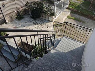 L'immobile è disposto su due livelli così composto: con accesso da scala esterna indi al ballatoio-terrazzo si accede allabitazione al piano rialzato avente ingresso, soggiorno e cucina a vista, bagno, camera, scala interna di accesso al piano T accessorio. Ampio terrazzo e porzione coperta con portico avente struttura lignea. Al piano terreno accessori con altezza 2,40 m con locale di sgombero e ripostiglio, disimpegno-corridoio, bagno, altro locale di sgombero, lavanderia, taverna, locale caldaia, portico.