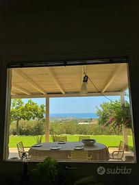 La villa può ospitare fino a 6 persone e dispone di una splendida terrazza dalla quale si può godere di una vista 180 gradi del mare e della magica campagna circostante.