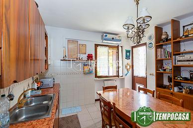 La cucina abitabile, separata e di generose dimensioni, è perfetta per chi ama cucinare e vivere lo spazio in modo funzionale. Dalla cucina si accede direttamente al giardino privato, un'area verde di circa 240 mq che circonda la casa, ideale per pranzi all'aperto, attività all'aperto con i bambini o per chi possiede animali domestici.