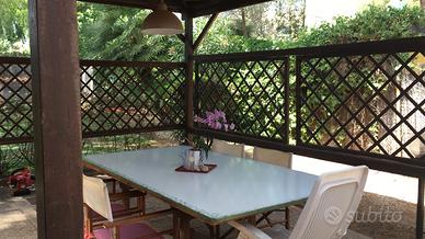 nella comunione di stella marina, adiacente al complesso turistico del Forth hotel village, vendiamo villa con giardino su un lotto di mq 600 circa. la casa di mq 150 piu loggiati, si sviluppa in due piani. al piano terreno il soggiorno con camino si apre sul loggiato ed è servito da un bagno e cucina.al piano primo si trovano le tre camere da letto e un altro bagno. negli ultimi anni sono stati esguiti lavori di aggiornamento degli impianti, elettrico ed idraulico, oltre i comuni lavori di ordinaria manutenzione. in giardino in prossimità della cucina sitrova un forno per il pane ed il barbecue.
