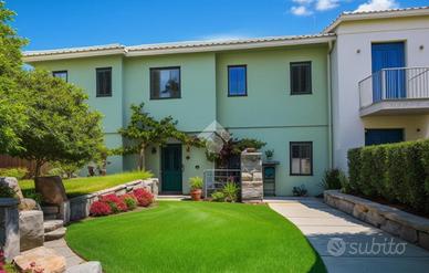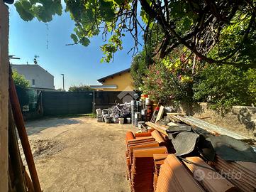 La porzione è caratterizzata da un piazzale di scoperto privato sul fronte, dove troviamo anche l'accesso all'ampia zona giorno di circa 30 mq con un bagno a servizio della stessa ed un pratico ripostiglio/lavanderia con portafinestra sul retro, che risulta essere anche decesso alla striscia di giardino privato.