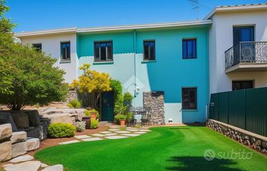 La porzione è caratterizzata da un piazzale di scoperto privato sul fronte, dove troviamo anche l'accesso all'ampia zona giorno di circa 30 mq con un bagno a servizio della stessa ed un pratico ripostiglio/lavanderia con portafinestra sul retro, che risulta essere anche decesso alla striscia di giardino privato.