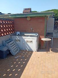 Lavinio zona Giornalisti, via Valle Schioia villa a schiera su tre livelli composta da PT soggiorno e cucina. Al piano superiore disimpegno, camera, cameretta e bagno. Al piano seminterrato Sala hobby con accesso sia dall'interno di casa che dall'esterno. con locale pluriuso e bagno. Giardino e posto auto. Pavimentazione della veranda e del piano terra rifatta