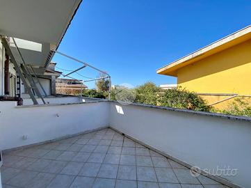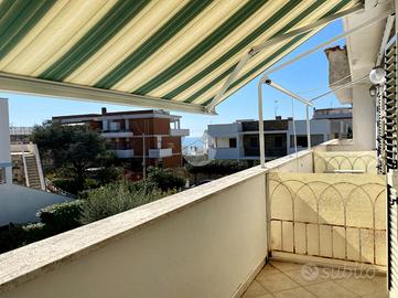 Dal piano superiore, tramite scala retraibile, si accede al lastrico solare con vista mare, utilizzato per l'ispezione dei pannelli fotovoltaici da 3,5 kW con inverter e batteria di accumulo, oltre ai motori dei climatizzatori e allo scaldabagno a pompa di calore.