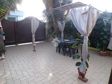 In zona residenziale abitata tutto l'anno disponiamo la vendita di un villino a schiera centrale su unico livello ristrutturato completamente nel 2013, entrando ci accoglie una corte mattonata dove poter parcheggiare un atuo, veranda coperta attrezzata , molto accogliente con forno e stufa a pellet che alimenta i termosifoni e armadi a muro. Sala di 26 mq, cucina abitabile, disimpegno, camera matrimoniale con bagno en suite e vasca idromassaggio, seconda camera da letto di 12 mq con uscita diretta al giardino posteriore dove troviamo una depandance con cucina. Bagno con doccia idromassaggio. La villa dispone inoltre di una mansarda con accesso interno che funge sia da ripostiglio che da intercapedine. Vespaio, Inferate, grate zanzariere e persiane blindate, infissi in legno PVC doppio vetro, bombolone GPL interrato e condizionatore in cucina.