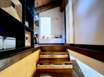 Tramite un'elegante scala a vista, dal soggiorno, abbiamo la possibilità di accedere al sotto tetto abitabile, uno spazio jolly per chi volesse creare un ulteriore stanza da letto.