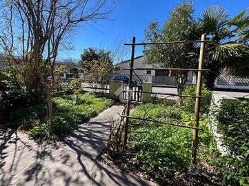 L'immobile si compone, al piano terra, da un ingresso attraverso il giardino frontale che conduce a un luminoso soggiorno, collegato a una stanza, perfetta come studiolo o zona relax con caminetto. Proseguendo, troviamo la cucina abitabile, dalla quale un disimpegno permette l'accesso al giardino posteriore.