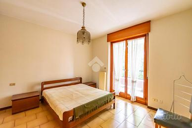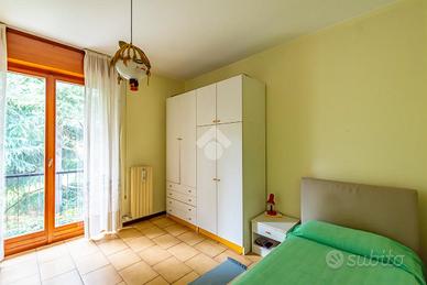 Salendo al primo piano, la zona notte offre una camera matrimoniale di ampia metratura con balcone privato affacciato sul verde, due camerette spaziose (una delle quali con secondo balcone privato) e due bagni finestrati, entrambi comodi e funzionali.