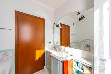 Scendendo al piano seminterrato, troviamo una taverna ampia e versatile, utilizzabile come sala hobby, area relax o spazio conviviale. Sullo stesso livello è presente una zona lavanderia dedicata e un accesso diretto al box doppio in larghezza, che offre grande comodità e ulteriore spazio di deposito.