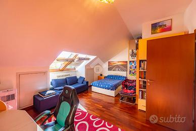 All'ultimo piano si trova un locale mansardato finemente rifinito, composto da una camera da letto aggiuntiva, uno studio riservato - ideale per chi lavora in smart working - e un bagno completo, che rendono questo livello perfetto come area indipendente per ospiti o familiari.
