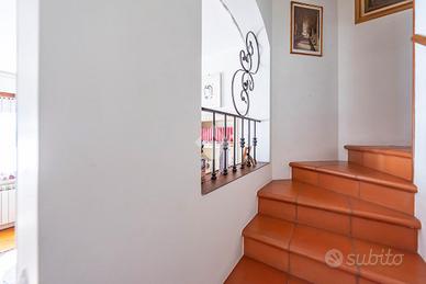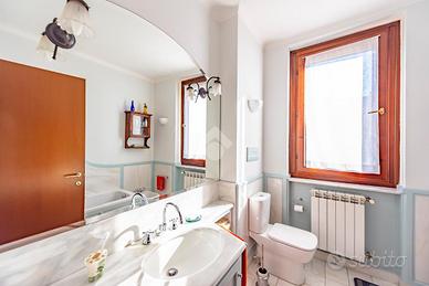 Al primo piano si sviluppa la zona notte principale, composta da tre camere da letto di generose dimensioni, luminose e ben arieggiate. Due bagni completi, di cui uno a servizio della camera matrimoniale, garantiscono praticità e comfort per tutti i componenti della famiglia.