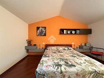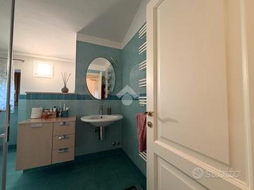 Al piano di sopra si accede alla zona notte dove troviamo la seconda camera con all'interno un servizio igienico finestrato, camera matrimoniale con cabina armadio, ed un terzo wc finestrato.