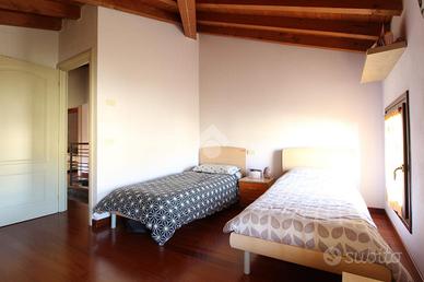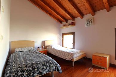 Il secondo ed ultimo piano, interamente caratterizzato da splendide travi a vista, accoglie la zona notte con due spaziose camere matrimoniali e un bagno con vasca.