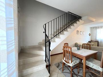VILLA A SCHIERA sviluppata su due livelli, completa di un cortile antistante che consente anche il parcheggio di un'auto. Accediamo all'immobile tramite una porta blindata che si apre su un ampio e luminoso soggiorno, caratterizzato da spazi ben definiti, ideali per momenti di convivialità e per pranzi in famiglia.