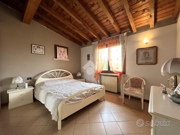 Attraverso una scala interna nel soggiorno, si accede alla zona notte al piano superiore, composta da tre camere da letto: due matrimoniali e una singola, perfetto per famiglie numerose. Un secondo bagno finestrato con vasca offre comfort e praticità.