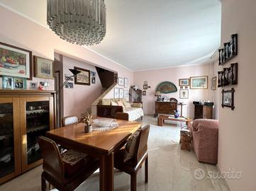 Una scala a vista porta al piano superiore, dove si trovano quattro camere da letto, di cui due con terrazzo privato. Il piano comprende anche un bagno finestrato con vasca.