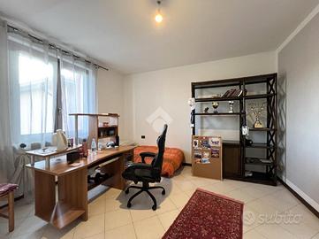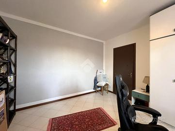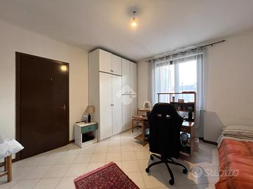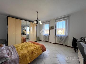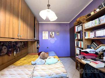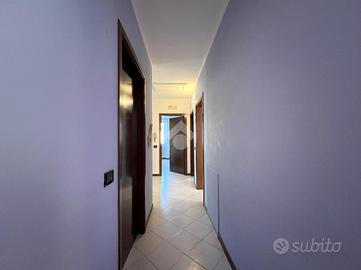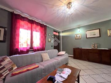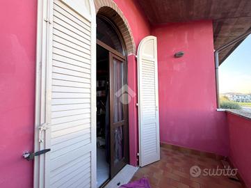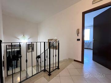 Villa a schiera su due livelli con porticato, giardino fronte e retro e posto auto davanti all'autorimessa. All'ingresso troviamo un ampio e luminoso soggiorno, una cucina separata e abitabile, un bagno finestrato con doccia e un'autorimessa doppia collegata direttamente all'abitazione. Dal corridoio della zona giorno, una portafinestra conduce al giardino sul retro, ideale per momenti di relax e per godere della massima privacy. Salendo al piano superiore, tramite una comoda scala con spazio sottoscala, si accede alla zona notte composta da tre camere da letto: due matrimoniali e una doppia, quest'ultima con accesso al balconcino. Il bagno principale, anch'esso finestrato, è dotato sia di doccia che di vasca. Completa il piano un secondo balcone, spazioso e vivibile, che si affaccia sul corridoio della zona notte.