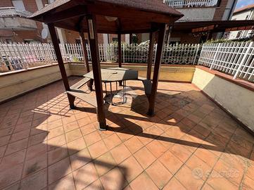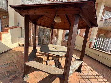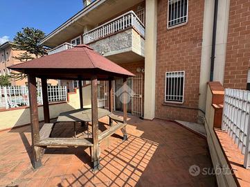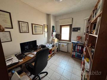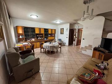 Proponiamo in vendita, a ridosso del centro situata in zona tranquilla e residenziale, VILLA A SCHIERA con corte privata sia sul fronte che sul retro. L'immobile si sviluppa su più livelli ed è così composto: Piano terra: ingresso, ampio e luminoso soggiorno, cucina abitabile con accesso diretto al terrazzo dotato di gazebo, studio e bagno. Piano primo: tre camere da letto, di cui due matrimoniali con uscita sul balcone e una singola, lavanderia, ripostiglio e bagno. Completa la proprietà al piano seminterrato: spazioso grottino con camino e bagno, cantina, legnaia, comodo box auto doppio con serranda automatizzata. BUONO STATO Attestato energetico in corso di rilascio.