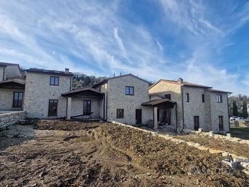 (Riferimento: SISMANO04-1) Nella belllissima frazione di Simano vendiamo villa a schiera di testa libere su 3 lati con giardino privato e posto macchina in costruzione cosi composta piano terra cucina abitabile , salone , bagno di servizio , locale tecnico e uscita sul portico , piano secondo due camere matrimoniali con due bagni , la casa viene data completamente finita , chiavi in mano completamente recintata , in questa fase si possono fare delle personalizzazione nelle finiture , ottima posizione panoramica , struttura antisismica con esterni in pietra .