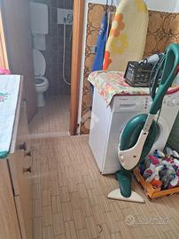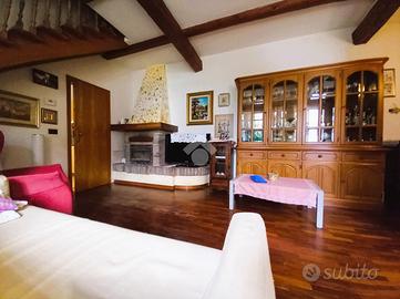 Internamente abbiamo al piano terra la zona giorno costituita da una ampio soggiorno con angolo cottura e con un bel camino in muratura, poi abbiamo una zona di servizio ad uso cantina/lavanderia già predisposta anche per fare una ulteriore cucina ed un bagno di servizio.