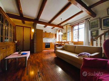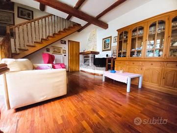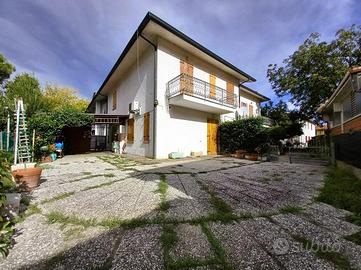 In bella zona residenziale, riservata e silenziosa, vicina a tutti i servizi, villetta d'angolo disposta su due livelli in buono stato. Entrando dal corsello carrabile arriviamo all'ampio giardino di quasi 150 mq quasi tutto pavimentato e utilizzabile anche come posto auto. Internamente abbiamo al piano terra la zona giorno costituita da una ampio soggiorno con angolo cottura e con un bel camino in muratura, poi abbiamo una zona di servizio ad uso cantina/lavanderia già predisposta anche per fare una ulteriore cucina ed un bagno di servizio. Salendo la scala in arredo in legno, arriviamo al primo piano dove troviamo una camera da letto matrimoniale con portafinestra che si affaccia sul balcone, il bagno principale ed una camera doppia dove volendo ci possono stare due letti singoli. Internamente le finiture sono degli anni '80 e sono in buono stato, abbiamo il pavimento in legno nel soggiorno e nelle camere da letto, gli infissi hanno già il doppio vetro, la caldaia è recente. Il prezzo è trattabile! Per vedere la casa chiamaci allo oppure manda una mail a: rahe4@tecnocasa.it