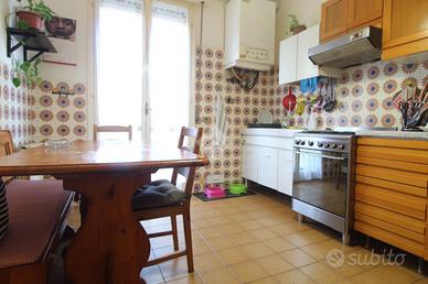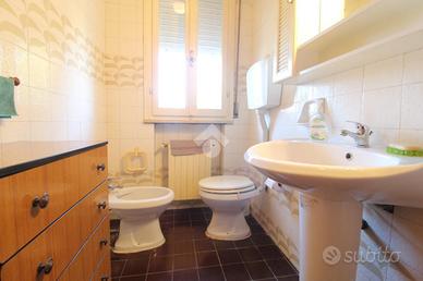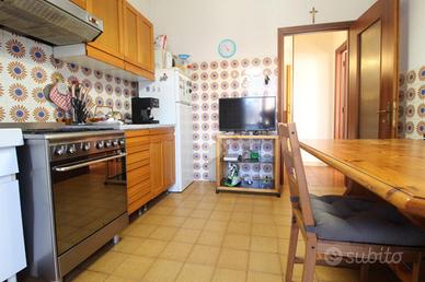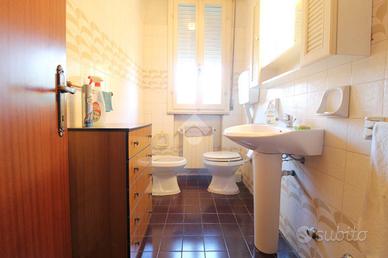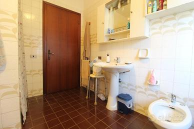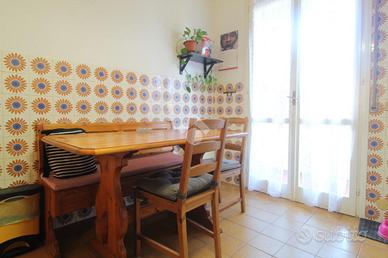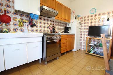 Proseguendo al piano rialzato, troviamo la zona giorno, con un soggiorno, una cucina abitabile ed un bagno dotato sia di vasca che di doccia.