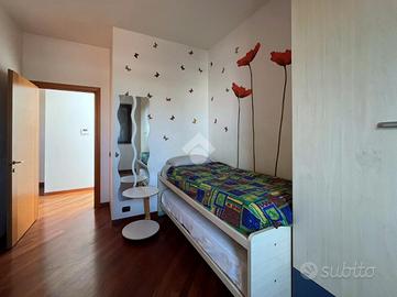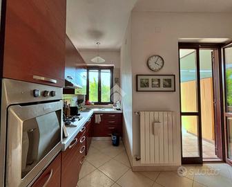Al piano rialzato si accede direttamente in un soggiorno luminoso, adiacente a una cucina abitabile. Sullo stesso livello è presente un bagno ampio e finestrato. Al primo piano si trovano tre camere da letto: una cameretta spaziosa, una seconda camera più piccola con accesso a un balcone e una camera matrimoniale che affaccia su un secondo balcone. Completa il piano un bagno con box doccia. Il piano seminterrato,invece, è composto da un'ampia tavernetta con camino, un bagno di servizio e la predisposizione per la realizzazione di una cucina.