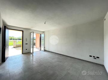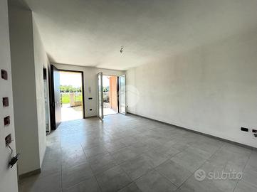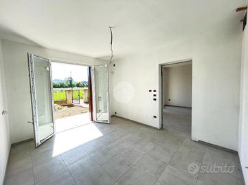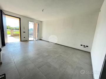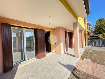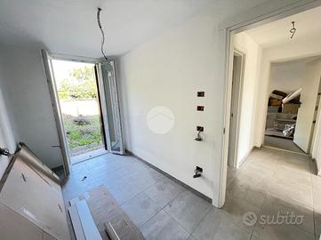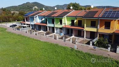 In zona tranquilla e riservata, ma comoda al centro del paese, proponiamo elegante casa a schiera di nuova costruzione, mai abitata, con finiture moderne e giardino privato.