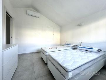 Delle comode scale rivestite in marmo collegano il piano terra al piano primo, nel quale trova spazio la zona notte formata da due camere doppie e da un secondo bagno completo.