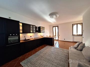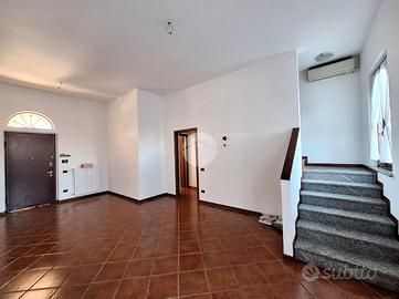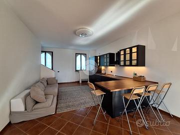 L'ingresso è anticipato da un caratteristico portico con mattoni a vista. All'interno, la scena è dominata dal soggiorno di ben 29 mq che si apre direttamente sul giardino privato posto sul retro. Completano il piano un bagno finestrato con doccia e un pratico ripostiglio nel sottoscala.