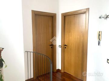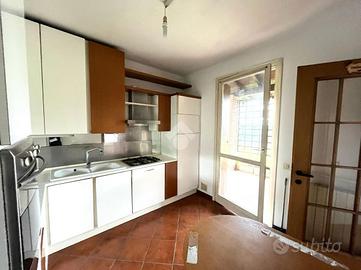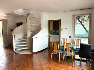 Al piano terreno si apre un luminoso soggiorno con accanto una cucina ampia e abitabile, affacciata su un ampio portico, ideale per trascorrere pranzi e cene all'aperto. Tramite il disimpegno si accede al bagno di servizio.