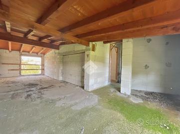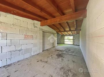 Disposta su più livelli, l'accesso carraio del box auto di 35 mq circa è al piano seminterrato con taverna di 30 mq sulla parte retrostante dello stesso.