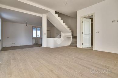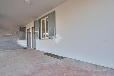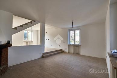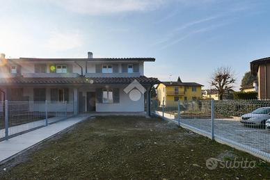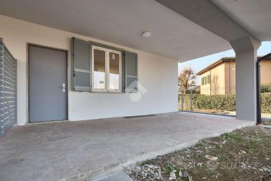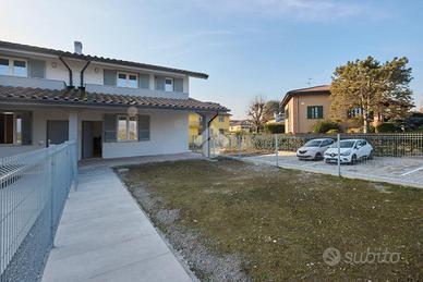 In centro paese, tutti i servizi sono raggiungibili a piedi e nelle immediate vicinanze è presente la pista ciclabile. La villa è stata costruita negli anni '80 e non era mai stata abitata, nel 2025 è stata completamente ristrutturata adottando le normative in materia di risparmio energetico con l'utilizzo della caldaia a condensazione e serramenti di ultima generazione, inoltre è presente la predisposizione per l'impianto di aria condizionata. La villa è laterale ed ha un giardino di proprietà davanti all'ingresso di circa 80 mq ed uno a lato da 100 mq, accanto al posto auto doppio che è possibile acquistare a parte ad euro 10.000. Davanti all'ingresso è presente un porticato di 25 mq in cui è possibile pranzare o rilassarsi nelle calde serate estive. L'ingresso è nella zona living, un ambiente ampio e diviso in due zone con un dislivello di qualche gradino tra una e l'altra. Nella zona living è presente un camino e la cucina è a vista, sullo stesso piano c'è il bagno con la doccia. Una comoda scala in muratura accompagna al primo piano dove si trovano tre camere da letto e un bagno. Completa la proprietà il box auto compreso nel prezzo.
