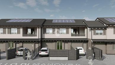Proponiamo in vendita spaziosa villa su più livelli con giardino privato di nuova costruzione, progettata per offrire il massimo del comfort e della funzionalità. La zona abitativa è di 160,10 mq. Al piano terra troviamo un ampio soggiorno con angolo cottura, perfetto per vivere al meglio i tuoi momenti di relax e convivialità. Completa il piano un comodo disimpegno e un bagno, pensato per soddisfare ogni esigenza. Al primo piano, invece, trovi una luminosa camera matrimoniale, tre camere singole perfette per tutta la famiglia, un pratico ripostiglio e un secondo bagno, che garantisce il massimo della comodità per ogni membro della casa. Il portico esterno di 12,60 mq ti offrirà uno spazio dove rilassarti all'aperto, mentre l'autorimessa di 18,36 mq ti permetterà di parcheggiare l'auto in totale sicurezza. Inoltre l'immobile dispone di un posto auto e un giardino privato di 417,58 mq. L'intera villa è in classe energetica A4, garantendo altissime prestazioni in termini di efficienza energetica con riscaldamento a pavimento ad alimentazione elettrica e predisposizione al condizionamento. Potrai personalizzare gli interni in base ai tuoi gusti e alle tue necessità, per creare la casa che hai sempre desiderato. La consegna è prevista per dicembre 2026. Il gruppo Tecnocasa offre consulenza riguardo tutte le fasi della compravendita e valutazioni gratuite del proprio immobile. Inoltre la collaborazione con il gruppo Kiron ci consente di fornirvi consulenza a titolo gratuito ed informativo per l'erogazione dei mutui bancari.
