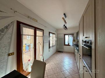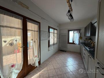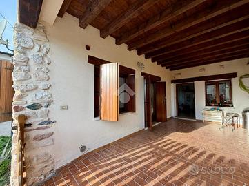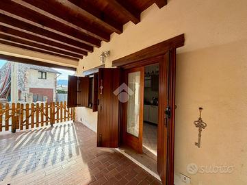 Al piano terra troviamo una piacevole zona giorno in open space con angolo cottura e con accesso diretto ad un grande portico travato a vista, perfetto per godersi pranzi all'aperto o semplici momenti di relax. Sullo stesso livello sono presenti anche un bagno finestrato e una comoda lavanderia con centrale termica, spazi pratici che rendono la casa particolarmente funzionale.
