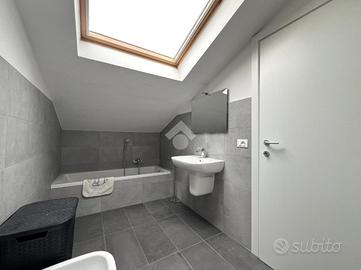 Il piano mansardato, completamente abitabile, ospita una seconda camera matrimoniale, un bagno finestrato con abbaino e vasca e un comodo ripostiglio.